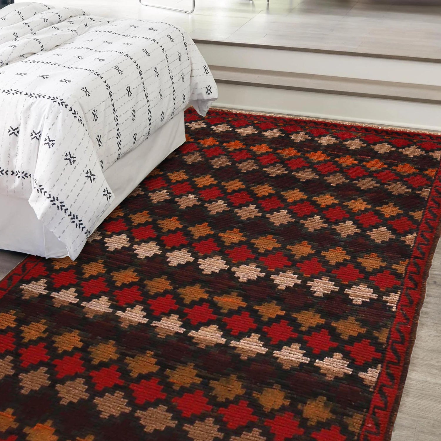 Rug ID G29090 Approx Size 3' x 5' Color Multi Material Wool Manufacturing Hand-Knotted Shape Rectangle Pattern Geometric Age New Design Baloch Size 2' 10"x 4' 5" (ft) / 87 x 135 (cm)