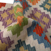 - This Turkish design flat-weave Kilim rug is available in multi-color combinations.